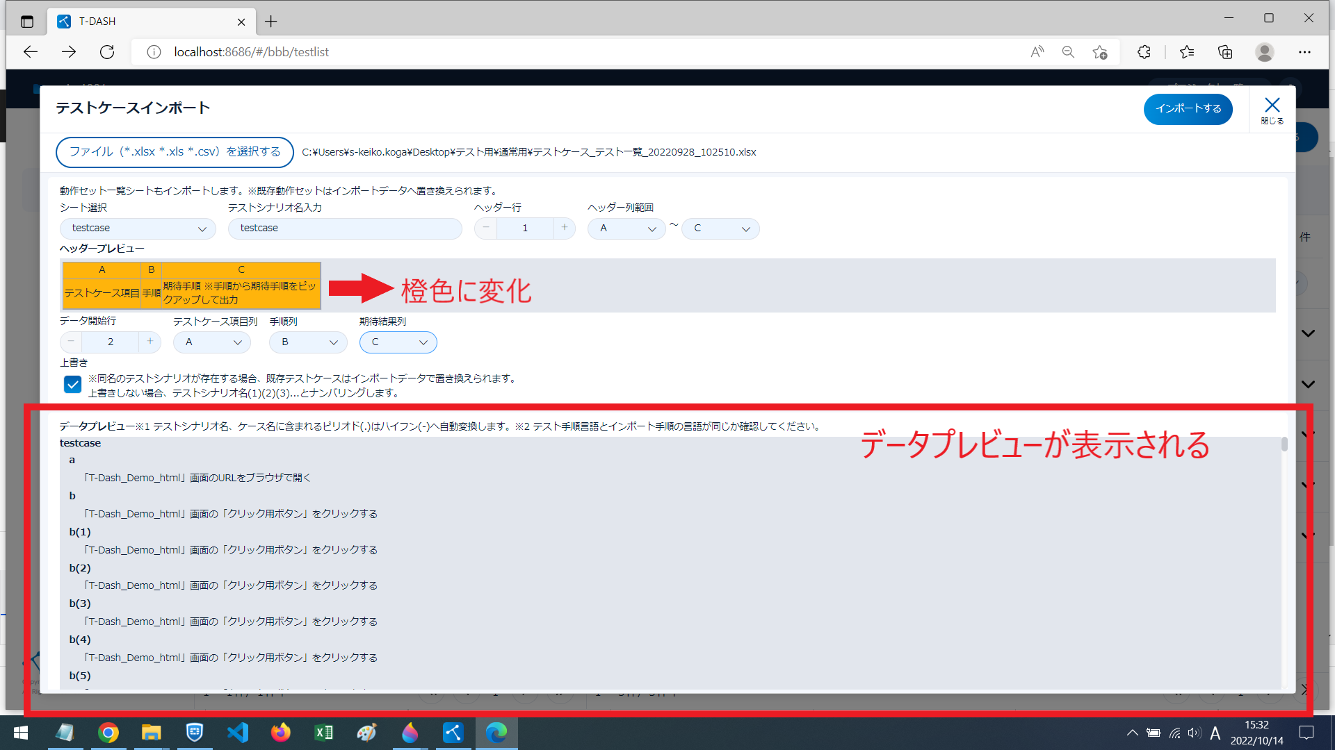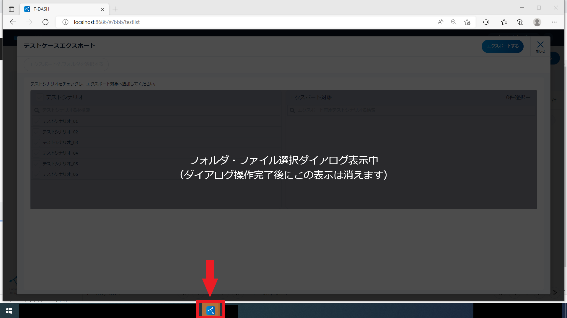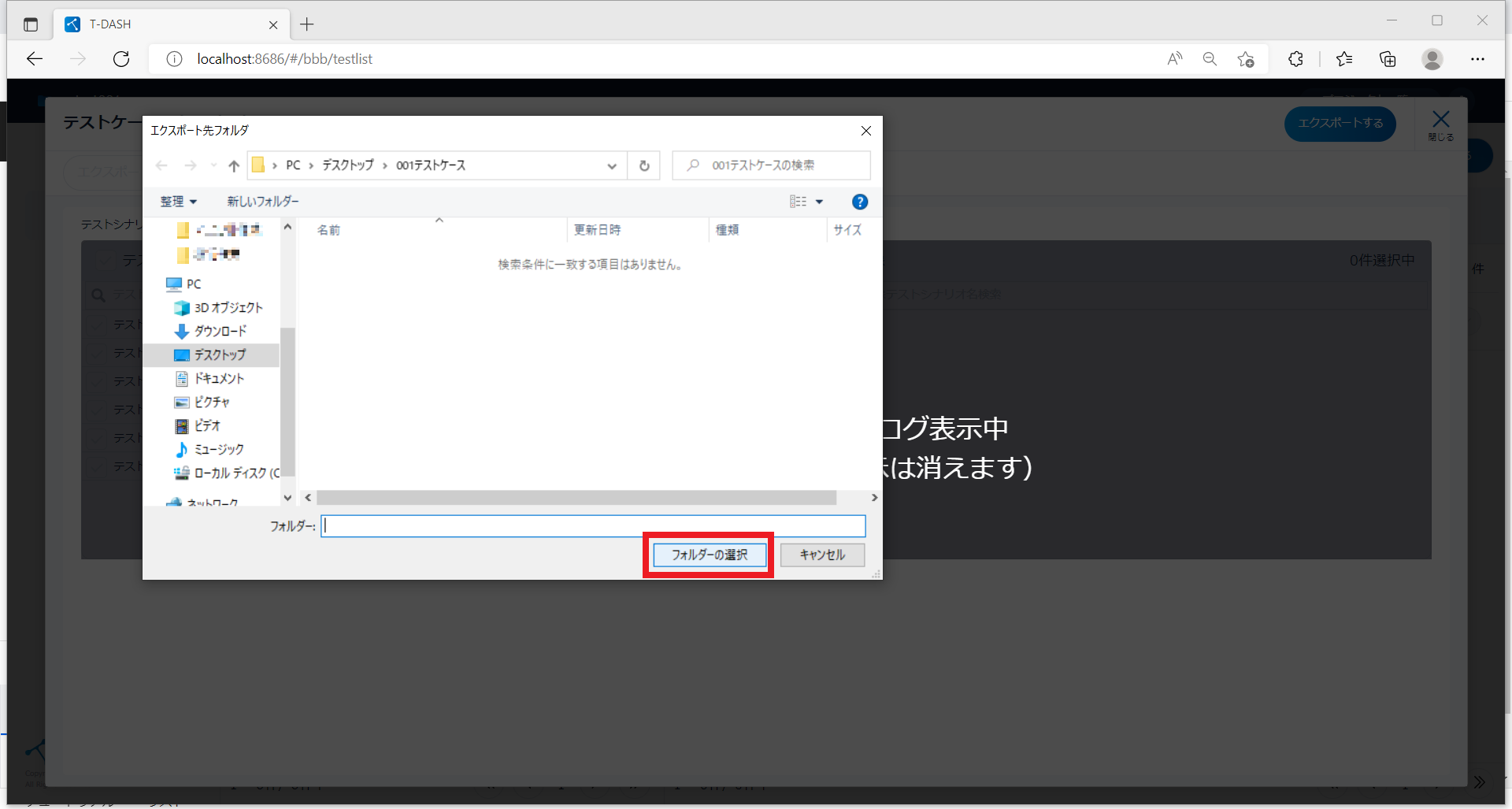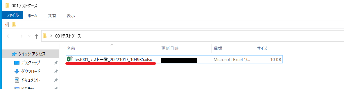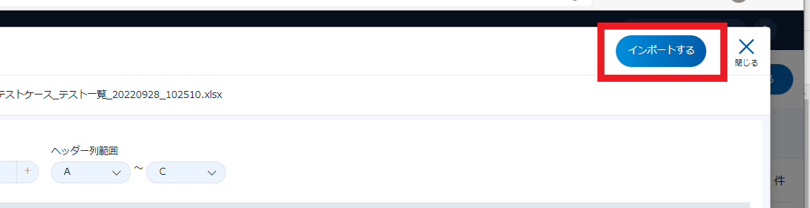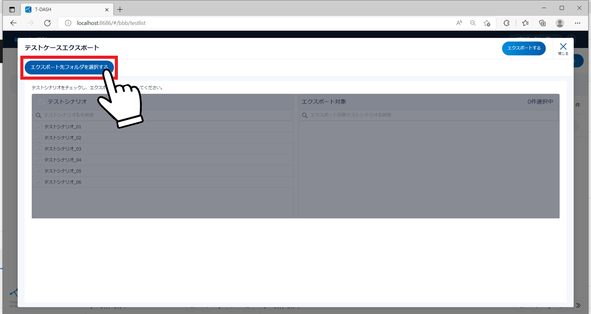 作成したテストケースはエクセルファイルにして「エクスポート(書き出し)」する事ができます。