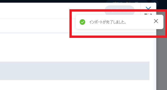 - インポートが開始され、右上に「インポートが完了しました」と表示される