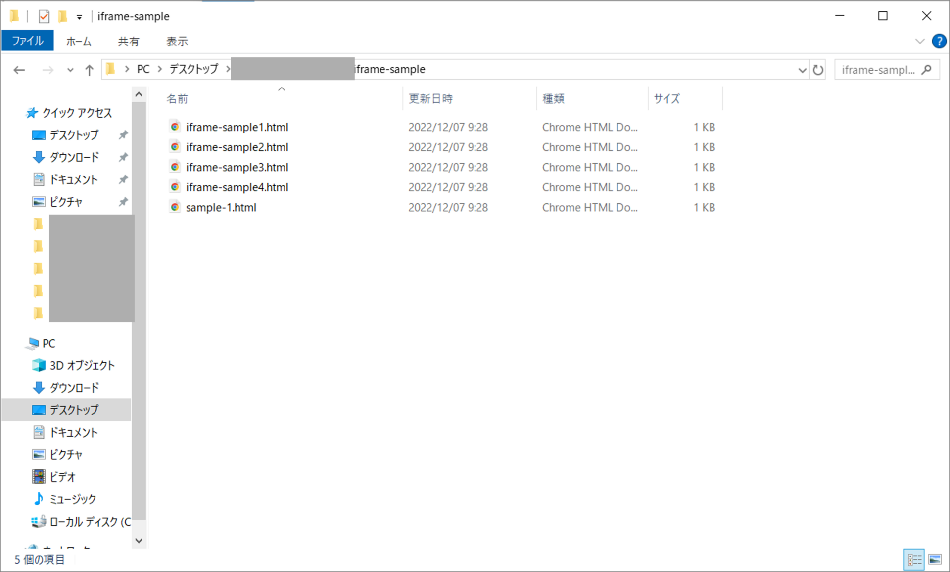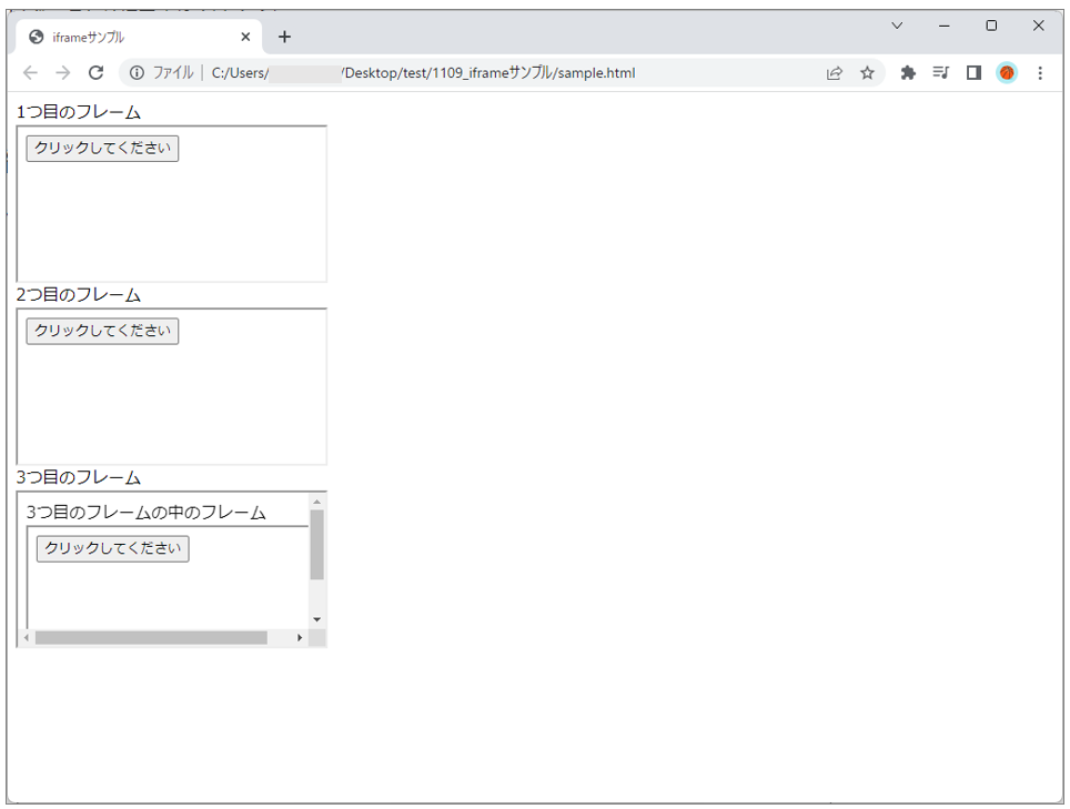 (例:file:///C:/Users/[ユーザー名]/Desktop/test/1109_iframe/sample.html)