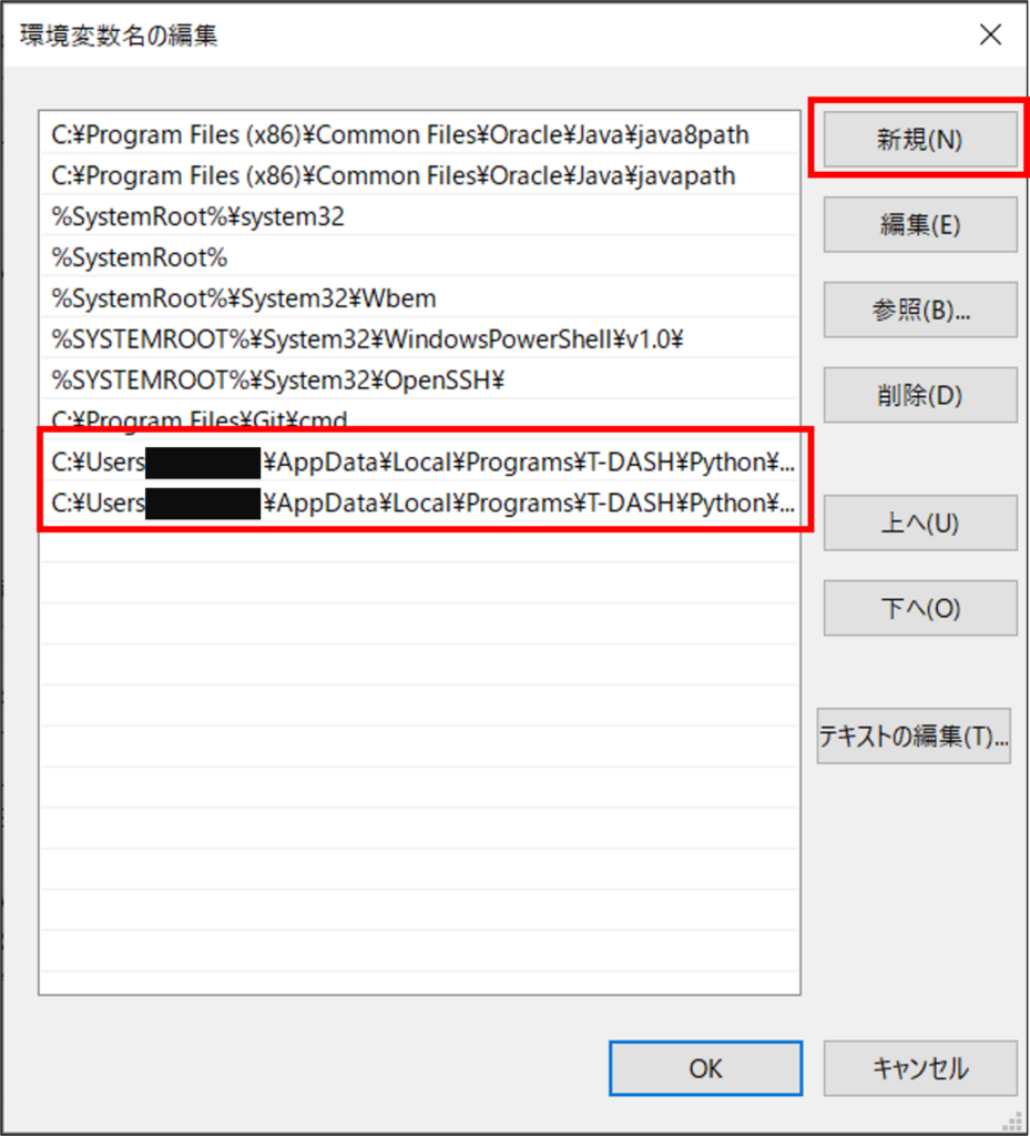 「新規」をクリックして、先ほどの2つのパスを追加する。