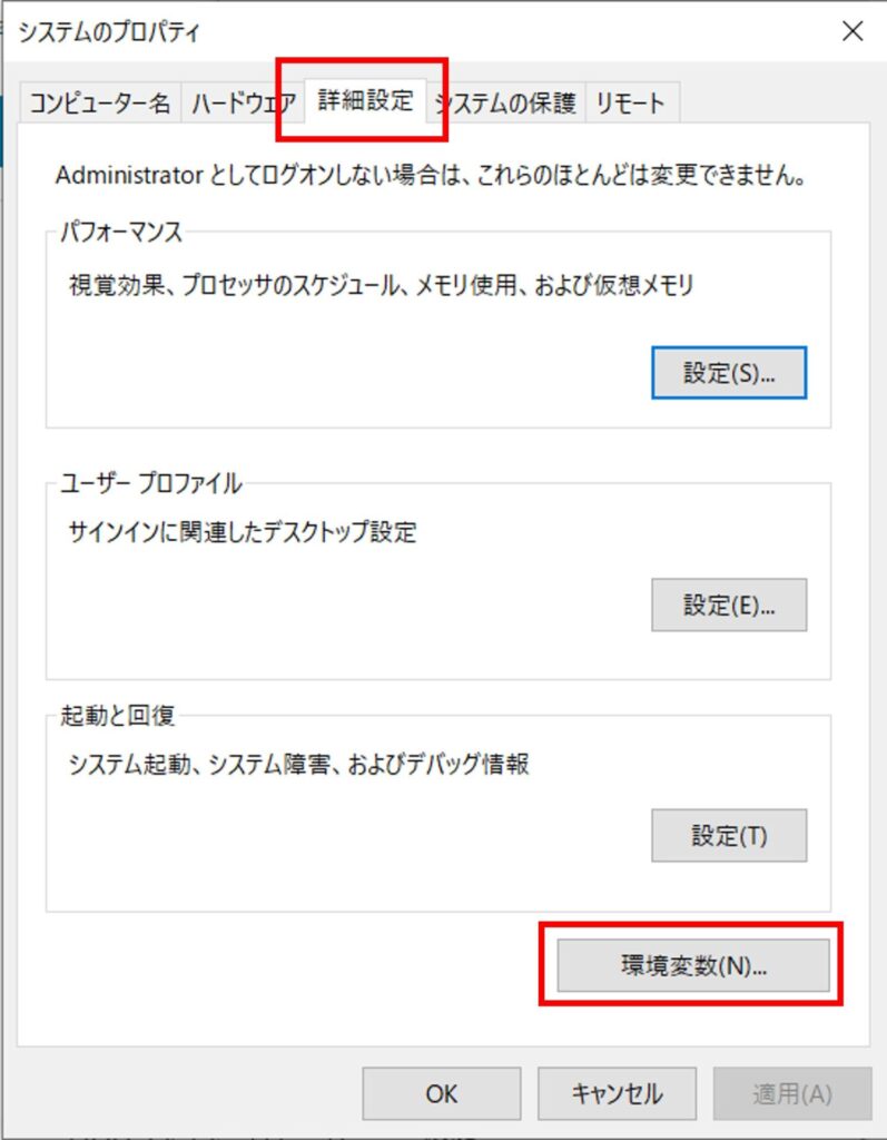 その場合は以下の手順で環境変数にパスの設定をお願いします。