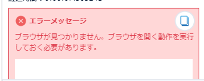 ブラウザが見つかりません。ブラウザを開く動作を実行しておく必要があります。