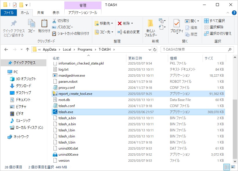 report_create_tool.exeをtdash.exeと同じ階層に配置すること。
