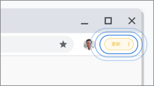 ブラウザ右上の表示が下の画像のようになっている場合、一度Chromeを終了し、バージョンアップを適用してください。