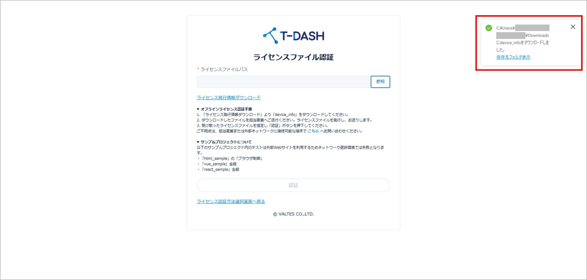 - ライセンス発行情報ファイル「device_info」(2-5.でダウンロード)