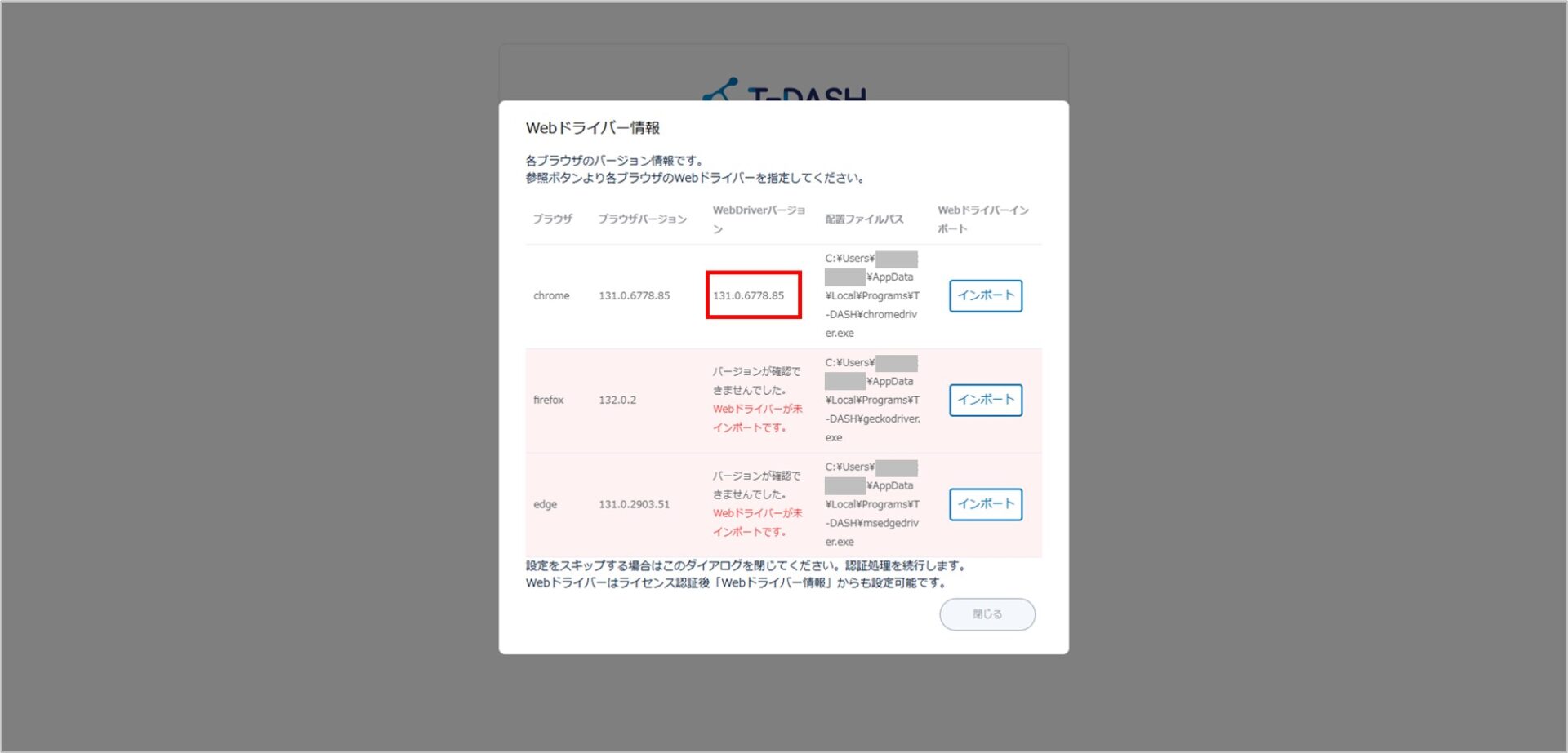 ※Webドライバーのインポートはスキップし、認証後にWebドライバーをインポートすることも可能です。