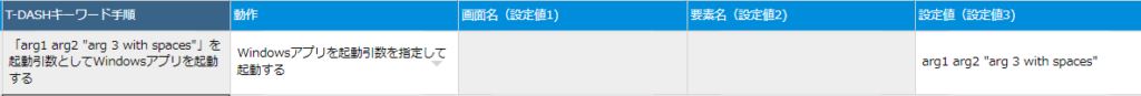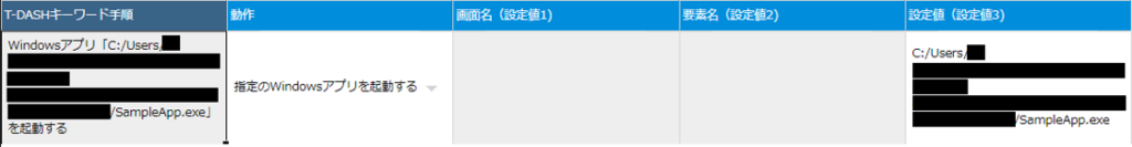 | 4 | アプリケーション操作 | 指定のWindowsアプリを起動する | 「設定値」に設定したフルパスのアプリを起動する。 パスは/(スラッシュ)区切りで入力する。 |