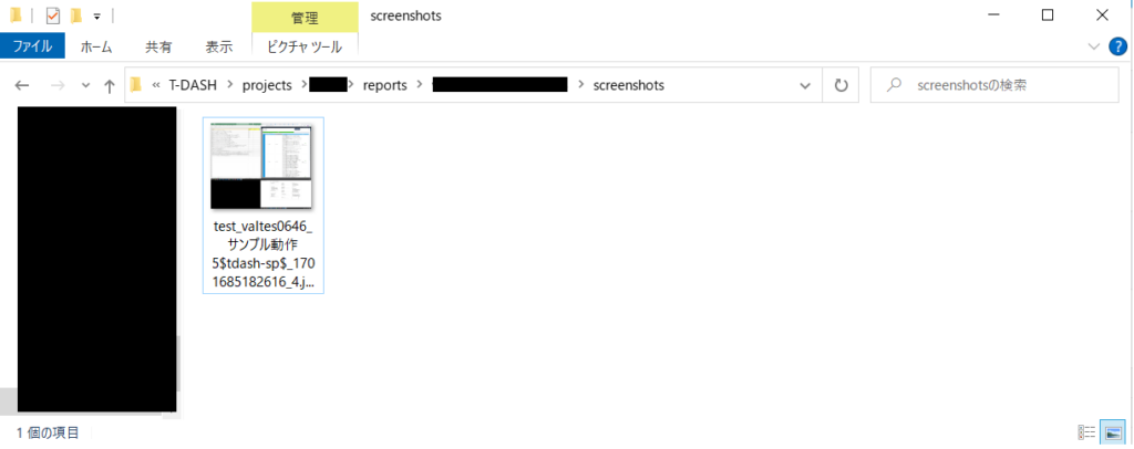 保存先は「T-DASHのインストールフォルダ\projects\任意のプロジェクトフォルダ\reports\プロジェクト名_実行日時フォルダ\screenshots」の配下となります。