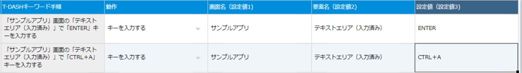 「CTRL+A」のように+でキーワードを結合することでショートカットキーとして動作が可能です。