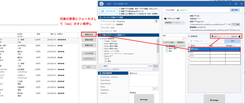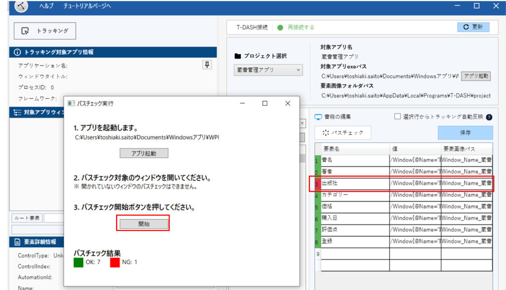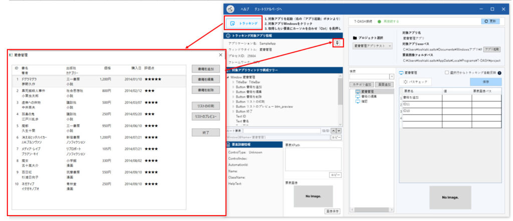 T-DASHではWindowsアプリの画面要素の値を取得できるキャプチャーツールも準備しています。