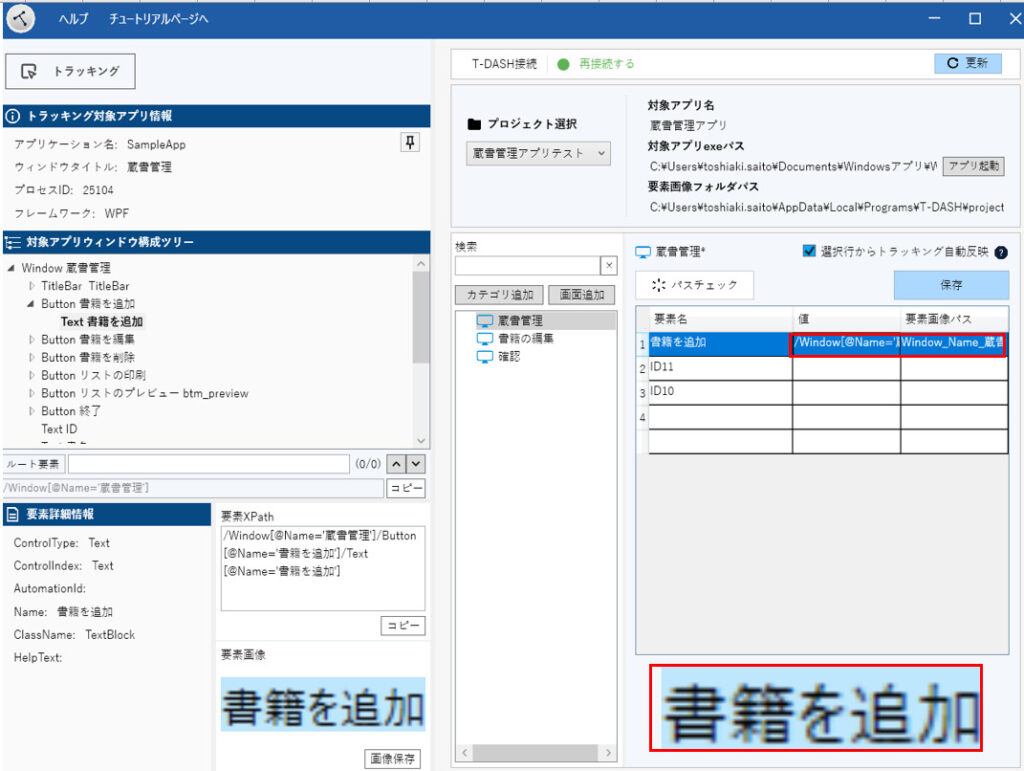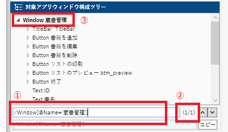3.1.対象アプリウィンドウ構成ツリー内の操作したい要素をクリックする