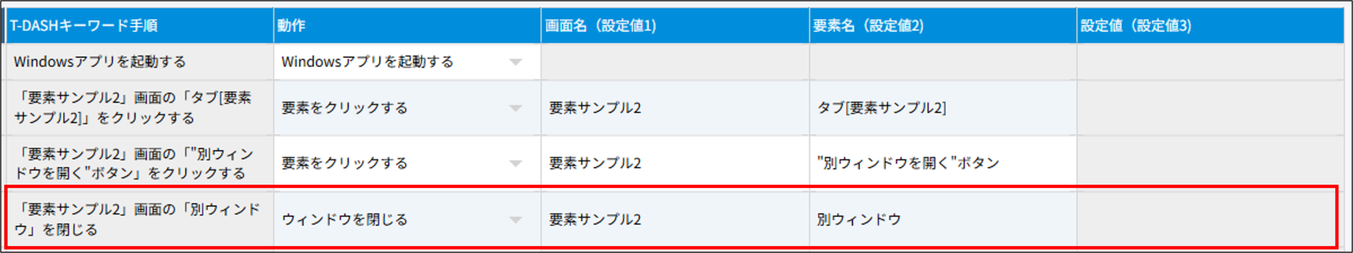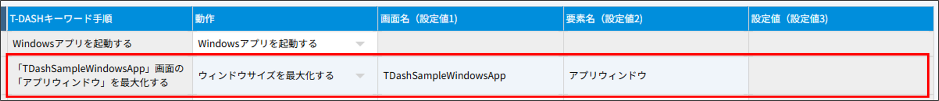 | 要素名(設定値2) | 画面定義で設定した要素名を入力する |