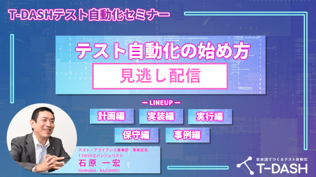この度、過去に実施しました「T-DASHテスト自動化セミナー」の見逃し配信を開催致します。