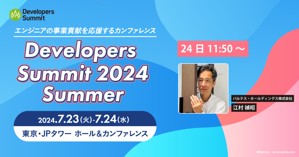 この度バルテスは、7月23・24日に開催される、エンジニアの事業貢献を応援するカンファレンス【Developers Summit 2024 Summer】に登壇いたします。