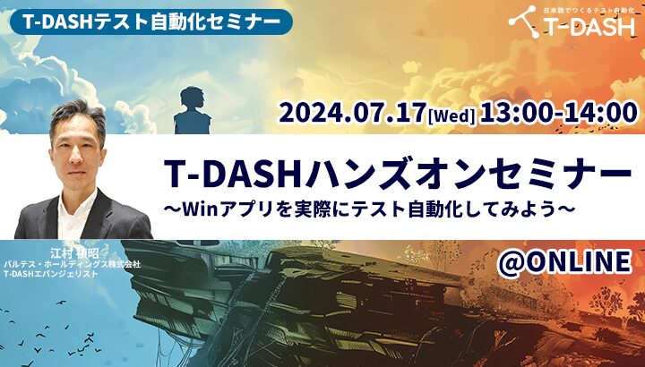 この度、T-DASHテスト自動化セミナーT-DASHハンズオンセミナー~Winアプリを実際にテスト自動化してみよう~の開催が決定いたしました。